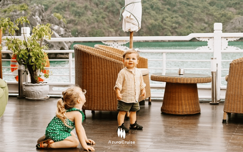 Một số du thuyền sẽ có dịch vụ dành riêng cho trẻ nhỏ như: cũi và ghế trẻ em hoặc bạn có thể nhờ nhân viên trông giúp trong thời gian ngắn. Các du thuyền thân thiện với trẻ em bao gồm Aspira Cruise, Azura Cruise, Carnival Cruise,…